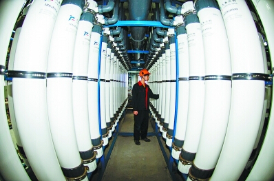 5月11日,在南通能達水務(wù)膜車間超濾系統(tǒng),一名技術(shù)工人在對設(shè)備例行檢查。