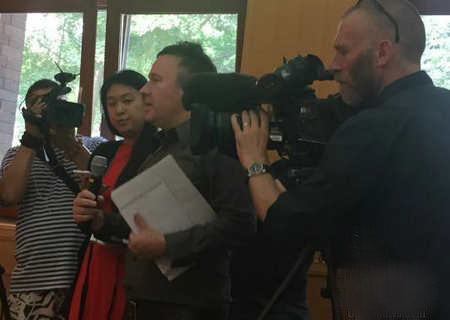 21日,美國、英國、加拿大、日本等10多個國家的70多位記者,走訪了北京市環(huán)境保護(hù)監(jiān)測中心、西北燃?xì)鉄犭娭行牡鹊?,調(diào)研北京大氣污染防治情況。圖為境外媒體采訪。
