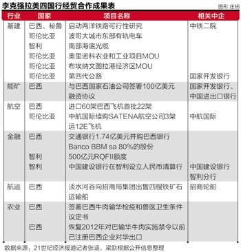 根據(jù)21世紀(jì)經(jīng)濟(jì)報道統(tǒng)計,總理拉美四國行簽署的基建、產(chǎn)能資金及項目,實際項目及意向協(xié)議總額超過了1000億美元。