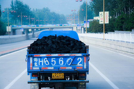 去年夏天,一輛拉煤的卡車(chē)行使在北京的街道上
