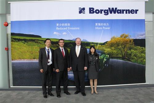 從左到右:摩斯鏈條高級工程經(jīng)理王峰、摩斯技術(shù)系統(tǒng)/可靠性和測試工程總監(jiān)Simon Barrette、博格華納副總裁兼首席技術(shù)官Chris Thomas、摩斯鏈條系統(tǒng)中國區(qū)銷售總監(jiān)車蘊(yùn)奇
