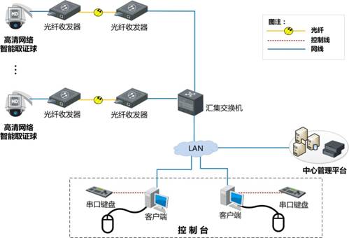 現(xiàn)階段,傳統(tǒng)手動抓拍系統(tǒng)需要在違法行為頻發(fā)區(qū)域布設(shè)模擬球機(jī)或數(shù)字球進(jìn)行圖像采集,視頻圖像通過同軸電纜傳到監(jiān)控中心,監(jiān)控中心的業(yè)務(wù)專員通過鍵盤控制球機(jī)云臺,實(shí)時觀察道路車輛通行情況,一旦發(fā)生違法行為,手動控制球機(jī)跟蹤車輛違法過程,并通過變倍放大聚焦等手段獲取違法車輛號牌、車內(nèi)駕駛?cè)饲闆r等細(xì)節(jié)信息,最終實(shí)現(xiàn)違法行為取證,整個過程需要人工全程干預(yù)。