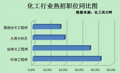 英才網(wǎng)聯(lián)旗下化工英才網(wǎng)的統(tǒng)計(jì)數(shù)據(jù)也顯示,2014年一季度全國化工行業(yè)的招聘需求較去年同期上漲了24.5%,漲幅平穩(wěn)。其中,環(huán)保類人才的招聘需求同比漲幅最大,較去年同期上漲了40%,漲幅達(dá)四成。