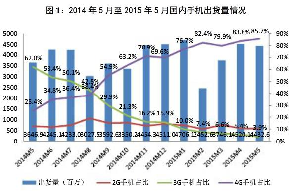 2015年5月國內(nèi)手機出貨量4432.6萬部