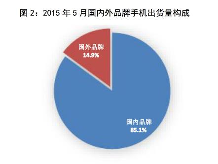 2015年5月,國產(chǎn)品牌手機出貨量達3770.7萬部,同比增長17.9%,占同期國內(nèi)手機出貨量的85.1%;上市新機型151款,同比下降28.4%,占同期國內(nèi)手機上市新機型數(shù)量的96.2%。1-5月,國產(chǎn)品牌手機出貨量1.59億部,同比增長19.3%,占同期國內(nèi)手機出貨量的80.3%;上市新機型622款,同比下降37.8%,占同期國內(nèi)手機上市新機型數(shù)量的94.2%。