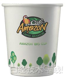 泰國(guó)最大的咖啡連鎖店“Cafe Amazon”使用的紙杯。采用了PBS涂層,可以生物降解。