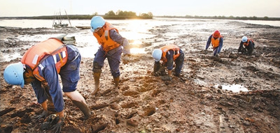 據(jù)了解,該輸電線路全長(zhǎng)38公里,其中9公里途經(jīng)灘涂地段。濱海泥沙淤積,8米長(zhǎng)的松木樁不能探底;潮漲潮落,數(shù)千噸建材要計(jì)算潮汐時(shí)間在最高水位時(shí)搶灘運(yùn)輸;運(yùn)輸線路選擇困難,為避免破壞中國(guó)現(xiàn)存面積最大的一片紅樹林,采取了大跨越方式避開紅樹林核心保護(hù)區(qū)。施工工程中,近700余名電網(wǎng)建設(shè)者克服高溫、曝曬以及灘涂施工、高空作業(yè),潮汐運(yùn)輸?shù)牟焕绊?,順利推進(jìn)工程建設(shè)。
