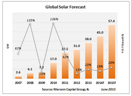 Mercom預(yù)計2015年全球新增光伏裝機達57.4GW