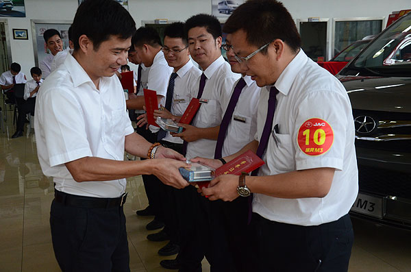 江淮汽車汪部長為杭州江盛店與溫州康華店的優(yōu)勝選手頒獎(jiǎng)