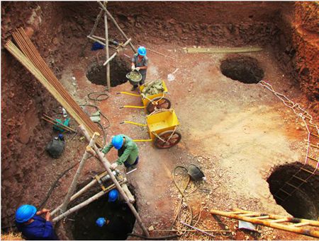 6月18日,在榆橫-濰坊1000千伏交流輸變電工程線路工程臨朐28標(biāo)段31#塔基施工現(xiàn)場,吉林送變電公司施工人員正在緊張有序的按計(jì)劃進(jìn)行施工。連日來,該公司在屬地公司臨朐公司的配合下,冒高溫全力推進(jìn)塔位基礎(chǔ)施工工作,確保特高壓工程順利推進(jìn)。