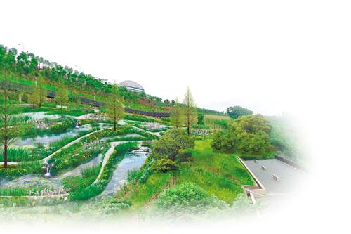 悅來新城“海綿城市”的建設理念是對城市生態(tài)環(huán)境影響最低,合理控制開發(fā)強度,在城市中保留足夠的生態(tài)用地,控制城市不透水面積比例,最大限度地減少對城市原有水生態(tài)環(huán)境的破壞。其中一個重要舉措是對區(qū)域內后河流域及張家溪流域生態(tài)系統(tǒng)進行恢復和保護;同時,根據需求適當開挖河湖溝渠、增加水域面積,促進雨水的積存、滲透和凈化。 在城市道路、房屋建筑、公園綠地、污水廠及排水管網等項目建設中,因地制宜、同步建設透水路面、綠色屋頂、下沉式綠地、雨水花園、濕地公園、雨水回用調蓄池、生態(tài)泄流通道、生態(tài)堤岸、初期雨水棄流等設施,實現(xiàn)雨水的滲、滯、蓄、凈、用、排,維持或恢復悅來新城的“海綿”功能,實現(xiàn)城市的良性水文循環(huán)。