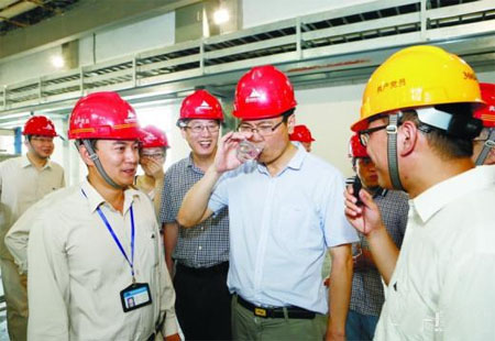 “我也要喝一口!”看著一股清澈的水流噴涌而出,媒體記者紛紛上前“討水喝”。