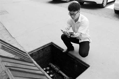 工作人員抄取已經(jīng)完成水表出戶居民的水表。