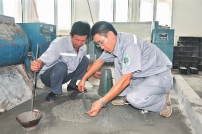戴會(huì)生(右)指導(dǎo)混凝土相關(guān)試驗(yàn)