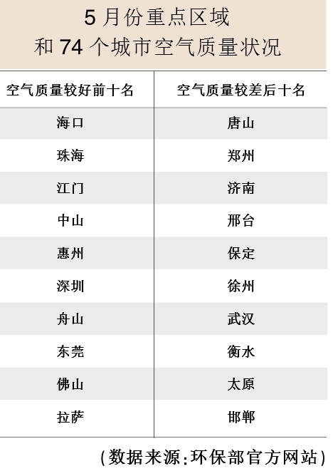 日前,環(huán)保部發(fā)布5月份重點區(qū)域和74個城市空氣質(zhì)量狀況。監(jiān)測顯示,5月份京津冀區(qū)域空氣質(zhì)量與上年同比、與上月環(huán)比均有所好轉(zhuǎn)。京津冀區(qū)域13個城市空氣質(zhì)量達標天數(shù)比例在30.0%—82.8%之間。