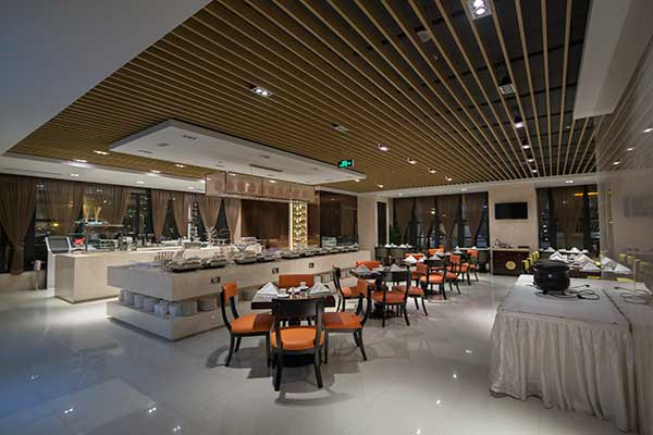 餐飲區(qū)的照明根據餐飲方式而有所區(qū)別。在案例中,品上照明根據餐飲方式選配不同照明產品,極力營造餐飲環(huán)境,滿足顧客身心需求。在自助餐飲區(qū),餐桌、物品擺放區(qū)為重點照明區(qū)域,品上照明選用顯色指數高達95的格柵射燈,還原食物本色,增加食欲。