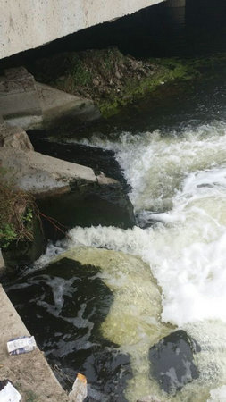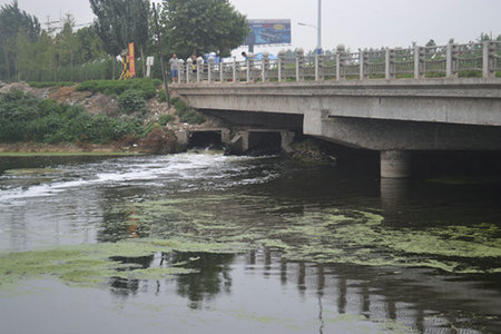 6月29日,保定市東三環(huán)黃花溝橋下,溪源、銀定莊污水處理廠的兩個(gè)排水口往黃花溝內(nèi)“吐”著水,河面水色發(fā)黃發(fā)烏。這些水經(jīng)黃花溝及府河最終流進(jìn)白洋淀。6月16日,國(guó)家環(huán)境保護(hù)部對(duì)保定市溪源污水處理廠進(jìn)行掛牌督辦處罰,責(zé)令其6個(gè)月升級(jí)改造完工。保定市排水總公司表示,今年12月中旬,溪源污水處理廠將會(huì)全面改造升級(jí)完成一級(jí)A建設(shè),屆時(shí),污水處理量達(dá)到22萬(wàn)噸。