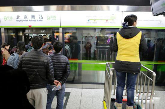 1月10日,北京地鐵9號(hào)線北京西站的工作人員站資料圖