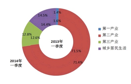 電力消費結構進一步調整。第三產業(yè)、城鄉(xiāng)居民生活用電占全社會用電比重同比分別提高0.2和0.1個百分點,而第一產業(yè)、第二產業(yè)用電比重同比分別降低0.2和0.1個百分點,四大高耗能行業(yè)用電比重同比降低0.3個百分點。
