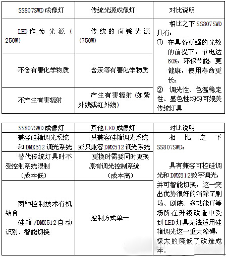 下圖為雅江SS807SWD成像燈與傳統(tǒng)光源成像燈、其他LED成像燈優(yōu)缺點(diǎn)對比: