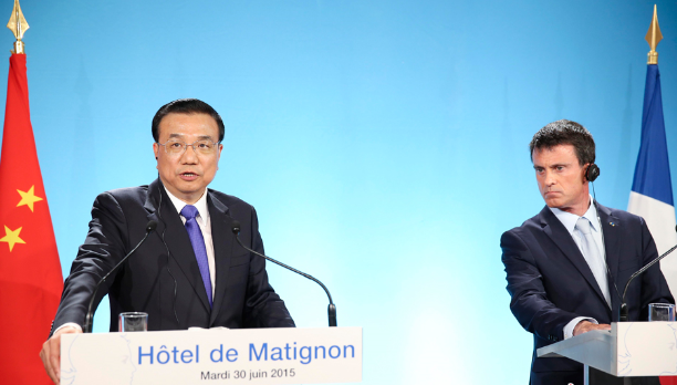 據(jù)中新社消息,出訪歐洲的中國國務(wù)院總理李克強當(dāng)?shù)貢r間6月30日下午在同法國總理瓦爾斯會談后共同會見記者。李克強指出,此訪期間,中法共同發(fā)表開發(fā)第三方市場合作協(xié)議。兩國愿采取多種形式,在核電、高鐵等領(lǐng)域開展三方合作,實現(xiàn)互利三贏。