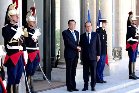 李克強(qiáng)總理30日在巴黎愛(ài)麗舍宮會(huì)見(jiàn)法國(guó)總統(tǒng)奧朗德。