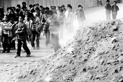 記者隨機(jī)采訪了一位家長,她擔(dān)心地說:“塵土亂飛在某種程度上會(huì)造成孩子的呼吸道感染,但是我們更加擔(dān)心的是,路上的磚頭堆要是突然坍塌,傷到孩子,后果不堪設(shè)想。”