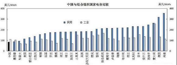 我國(guó)工業(yè)電價(jià)在世界上處于中等偏下水平,居民電價(jià)遠(yuǎn)低于國(guó)外。