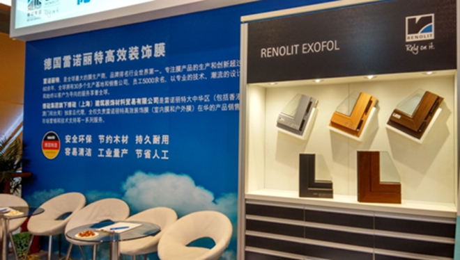 在這個(gè)系統(tǒng)中,最值得一提的是——覆膜高性能U-PVC高分子塑鋼型材。德國(guó)維卡的多腔體結(jié)構(gòu)的U-PVC塑鋼型材不僅提高了材料自身的隔熱、保溫性能,也提高了型材的強(qiáng)度。而與中國(guó)市場(chǎng)上的塑鋼型材不同,系統(tǒng)中使用的型材都是覆膜型材。所謂覆膜型材,就是在塑鋼表面覆上一層表面材料,正式這種看似不起眼的材料,才是真正的幕后英雄。而德國(guó)雷諾麗特膜,由于其由PMMA材料制成,擁有SST太陽(yáng)熱能屏蔽技術(shù),隔絕紫外線,抗污,抗老化,在德國(guó)的應(yīng)用使得門窗擁有40年以上的壽命。大大節(jié)省了建筑材料的使用。其次,德國(guó)雷諾麗特膜擁有1000種以上的花色變化,能賦予建筑靚麗的彩色外衣,讓建筑變得更加生動(dòng)。這也無(wú)怪乎歐洲覆膜塑鋼材料的門窗占到整體門窗市場(chǎng)50%以上。值得一提的是,在本次大會(huì)上,來(lái)自雷諾麗特總部的戶外膜亞太區(qū)負(fù)責(zé)人—漢斯.蓋博先生,又宣布了一條重磅消息。從2015年下半年起,雷諾麗特將為其旗下戶外膜產(chǎn)品提供質(zhì)保期內(nèi)的全面質(zhì)保。也就是覆膜部件一旦發(fā)生問(wèn)題,如根據(jù)檢測(cè),確系雷諾麗特戶外膜產(chǎn)品造成的,雷諾麗特將承擔(dān)所有損失,包括基材在內(nèi)。這是承諾,這也是作為業(yè)內(nèi)龍頭的雷諾麗特,為門窗產(chǎn)品高品質(zhì)化打響的第一炮。
