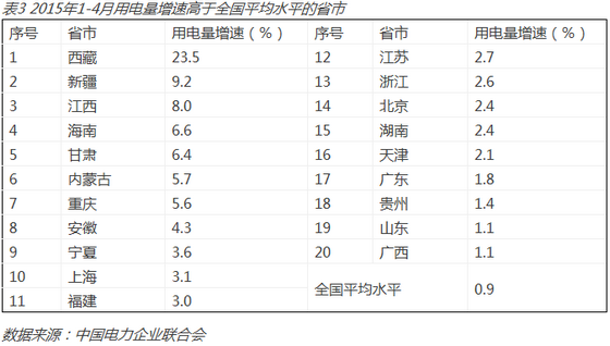 上半年,各地區(qū)工業(yè)經(jīng)濟(jì)增長(zhǎng)分化明顯,東、中、西部地區(qū)保持增長(zhǎng)態(tài)勢(shì),其中西部地區(qū)增速最快。5月份,東部地區(qū)工業(yè)增加值同比增長(zhǎng)6.7%,中部地區(qū)增長(zhǎng)6.5%,西部地區(qū)增長(zhǎng)7.8%,東北地區(qū)下降4.6%。相對(duì)較快的工業(yè)經(jīng)濟(jì)增長(zhǎng)帶動(dòng)西部省市用電量增速領(lǐng)先全國(guó),在用電量增速最快的10個(gè)省市中,除江西、安徽和上海外全部屬于西部。