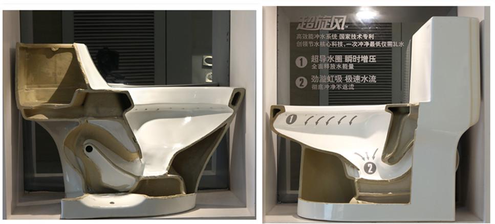 3.大管道設(shè)計:超旋風(fēng)馬桶的大管道設(shè)計,可迅速匯流,將污物順暢排出,沖水更快更順暢。
