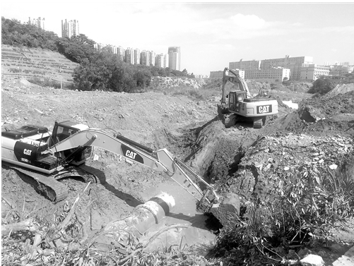 昨日,市城鄉(xiāng)建委檢查組對我市部分排污項目進行了檢查。污水管網的建設,通常與新建道路同步進行。在位于仙葫開發(fā)區(qū)的林里橋路污水工程項目建設現場,記者看到,多臺挖掘機、推土機正在緊張地施工當中。