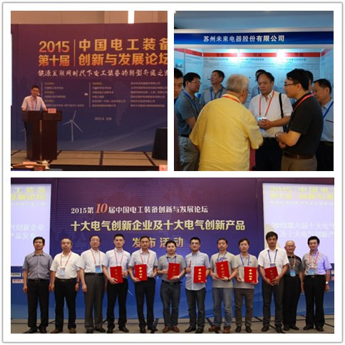 6月28號日蘇州未來電器股份有限公司在“2015第十屆中國電工裝備創(chuàng)新與發(fā)展論壇”上榮膺“十大電氣創(chuàng)新企業(yè)”獎項。
