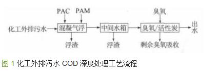 采用混凝氣浮—臭氧/活性炭組合工藝能將COD在60~100mg/L的化工外排污水COD穩(wěn)定地去除50%~80%,出水COD≤35mg/L,使出水穩(wěn)定達(dá)到《污水綜合排放標(biāo)準(zhǔn)》(GB/T8978—1996)的一級排放標(biāo)準(zhǔn)要求。