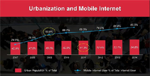 2009年,中國互聯(lián)網(wǎng)用戶中的移動(dòng)互聯(lián)網(wǎng)用戶的比例首次超過50%;2011年,中國城市人口比例首次超過50%。伴隨著中國移動(dòng)互聯(lián)網(wǎng)和城市化發(fā)展走向成熟,以騰訊為代表的行業(yè)先行者,通過互聯(lián)網(wǎng)推動(dòng)中國“智慧城市”的發(fā)展轉(zhuǎn)型,引領(lǐng)中國城市走在世界前列,挖掘“互聯(lián)網(wǎng)+”城市的無限潛力。