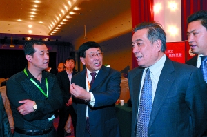 在四月十一至十二日于北京召開的二○一四石化產(chǎn)業(yè)發(fā)展大會上,中國石油和化學(xué)工業(yè)聯(lián)合會會長李勇武與會議代表進(jìn)行交流。 (圖片均由本報(bào)記者張育攝)