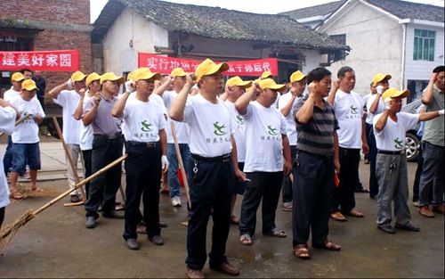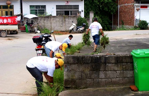 7月,瀏陽市中和鎮(zhèn)小江村出現一群身穿統(tǒng)一白色T恤,頭戴黃色小帽,拿把掃帚、撮箕、鋤頭的人。不干別的事,盡和垃圾雜草過不去。一看到垃圾就清掃起,收進撮箕。發(fā)現雜草即用鋤頭鏟除,在隊伍后還跟著3輛負責垃圾清運車輛。原來這是瀏陽中和鎮(zhèn)新組建的“綠燕子”環(huán)保志愿者協(xié)會在行動。