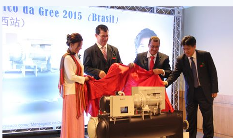 近日,珠海格力集團(tuán)有限公司世界首臺(tái)光伏變頻中央空調(diào)發(fā)布會(huì)亮相巴西里約熱內(nèi)盧。發(fā)布會(huì)上,格力集團(tuán)展示了零電費(fèi)新型格力中央空調(diào),受到了參會(huì)人員的熱捧。這是格力空調(diào)推出的原創(chuàng)、零電費(fèi)的新品,是格力發(fā)展中的又一里程碑。中國(guó)駐巴西大使李金章、格力電器董事長(zhǎng)董明珠與來(lái)自巴西各地的經(jīng)銷(xiāo)商代表共同見(jiàn)證了世界首臺(tái)光伏變頻中央空調(diào)的發(fā)布。