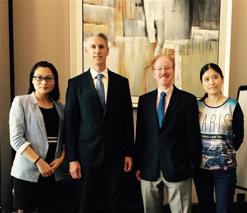 圖為:麥格納全球工程及研發(fā)中心副總裁大衛(wèi)·馬克·佩思科(左二)、麥格納國際亞洲區(qū)執(zhí)行副總裁弗蘭克·歐博恩(左三)與媒體合影