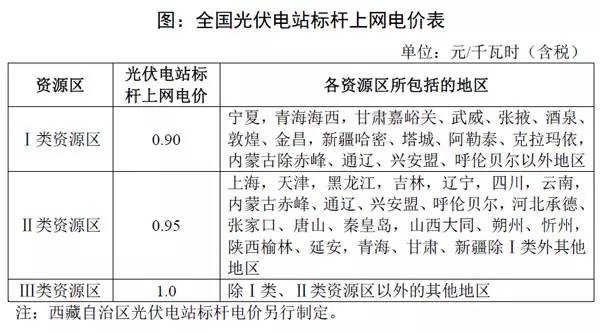 圖1:全國光伏電站標(biāo)桿上網(wǎng)電價(jià)表