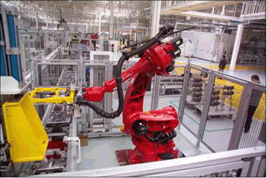 在另一項汽車智能化制造的實例中,一條基于機器人的汽車焊接自動化生產(chǎn)線,其研制的智能高速柔性自動化焊裝線,用來滿足白車身生產(chǎn)對高綱領、高節(jié)拍、高柔性、自動化、智能化焊裝線的生產(chǎn)需求,并實現(xiàn)了以下五項基本功能:一是智能切換,實現(xiàn)了關鍵焊接工位白車身總成車型切換及定位焊接;二是高速輸送設備,實現(xiàn)了工位間精確高速傳輸;三是質量控制,可在線檢測白車身焊接后的幾何精度;四是機器人焊接,實現(xiàn)了白車身總成的焊接及搬運;五是生產(chǎn)控制系統(tǒng),采用了基于工業(yè)總線技術的智能控制系統(tǒng)。
