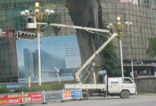 圖為路燈管理人員正在維護景觀燈的情景