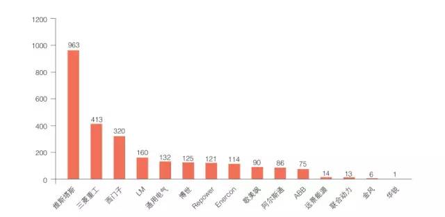 從企業(yè)角度看,在我國申請了風(fēng)電專利的企業(yè)中,GE 的申請量最多,達902 件,其次是Siemens ,為750 件。我國企業(yè)的總體占比為五成左右。而根據(jù)上述報告對2004 年至2013 年我國風(fēng)電專利授權(quán)量的統(tǒng)計,我國企業(yè)在風(fēng)電專利授權(quán)總量方面較為領(lǐng)先,其中,聯(lián)合動力排在第一位,達到484 件,第二位是華銳,金風(fēng)排在第四位。