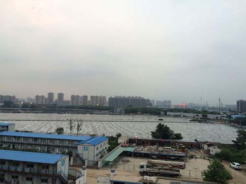 7月16日傍晚,千龍網(wǎng)記者在通州土橋中街自由筑社區(qū)拍攝的碧水污水處理廠全景。千龍網(wǎng)記者于振華攝
