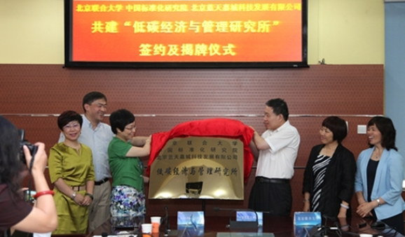 7月16日,北京聯(lián)合大學(xué)管理學(xué)院與中國標(biāo)準(zhǔn)化研究院、北京藍(lán)天嘉城科技發(fā)展有限公司共建“低碳經(jīng)濟(jì)與管理研究所”簽約及揭牌儀式在北四環(huán)校區(qū)舉行。