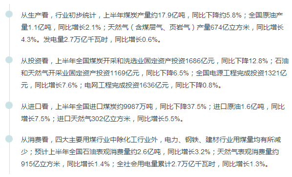 據介紹,上半年,能源領域呈現“生產總體平穩(wěn)、投資增速放緩、進口有升有降、消費增速回落”態(tài)勢。