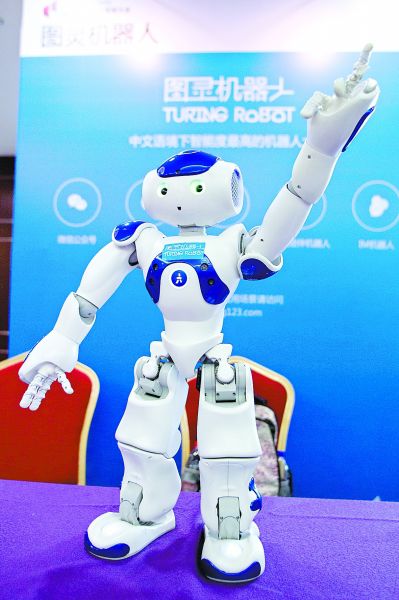 2015中國人工智能大會上展出的圖靈機(jī)器人,根據(jù)語音指令跳舞。 陳益宸攝