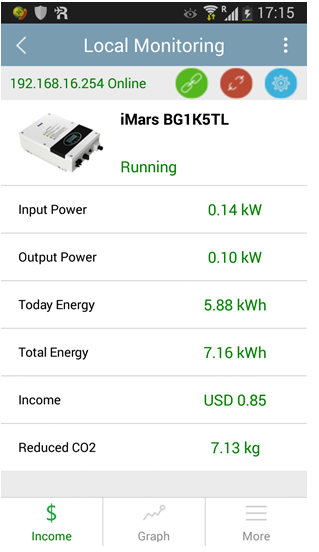 據(jù)介紹,此項(xiàng)目采用的是英威騰BG1K5TL逆變器,其電路結(jié)構(gòu)穩(wěn)定可靠,支持1路高效率MPPT跟蹤輸入,適合家庭屋頂小型電站的應(yīng)用。該產(chǎn)品采用IP65防護(hù)等級(jí),適應(yīng)室外各種惡劣環(huán)境,可以有效應(yīng)對(duì)越南潮濕的氣候。此款產(chǎn)品還可和WiFi200監(jiān)控連接,客戶可以實(shí)時(shí)監(jiān)測電站的運(yùn)行情況。