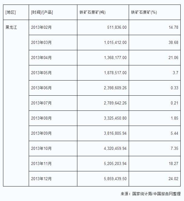 2013年黑龍江鐵礦石原礦生產(chǎn)量及增速情況