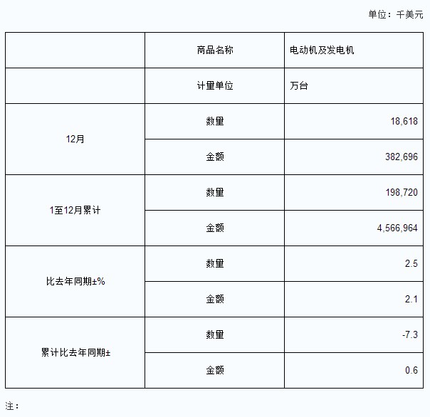 2013年1-12月中國(guó)進(jìn)口電動(dòng)機(jī)及發(fā)電機(jī)商品數(shù)量及增速同比